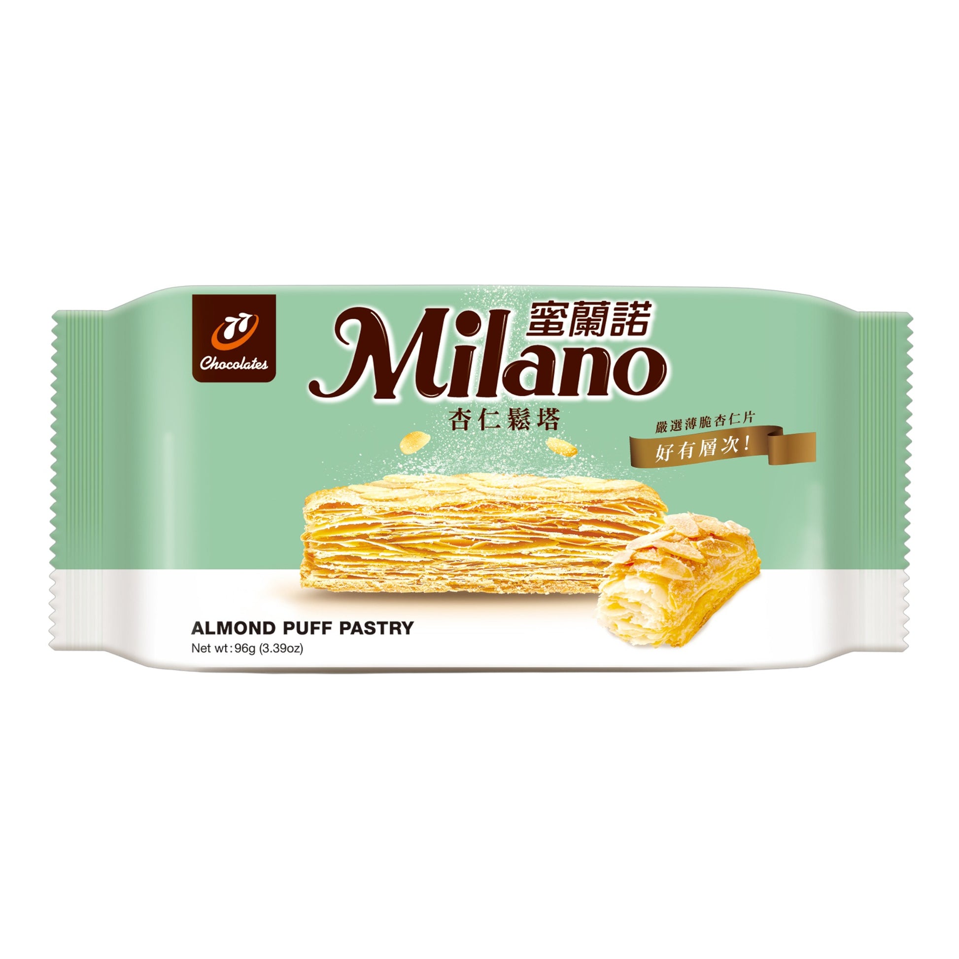 多層鬆脆的酥塔餅,點綴香烤杏仁片,奶香酥香、甜而不膩,適合下午茶點。※過敏原以包裝為準(常見含小麥麩質、奶、蛋、杏仁)。